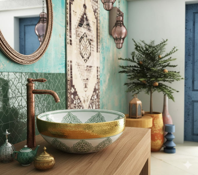 Wij zijn meer dan alleen makers van waskommen – wij zijn verhalenvertellers van het Marokkaanse erfgoed. Gespecialiseerd in handgemaakte Marokkaanse waskommen, combineren wij eeuwenoude tradities met moderne elegantie. Elke waskom wordt vervaardigd door bekwame ambachtslieden die hun hart en ziel in elk detail leggen, van de handgeschilderde patronen tot de vloeiende rondingen van de klei.