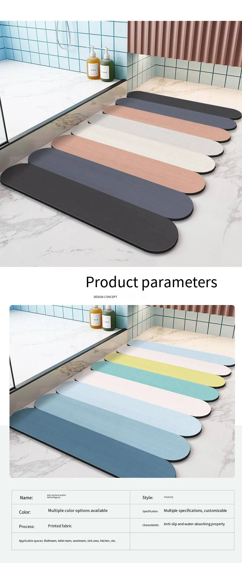 VIKAMA Nordic Diatom Mud Bathroom Water-Absorbing Anti-Slip Mat, Toilet Entrance Mat, Quick-Drying Foot Mat, Home Decoration