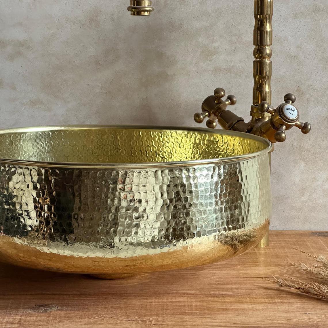Op maat gemaakte messing badkamer wastafel – Massief messing wastafel in gepolijst gelakt messing of verouderde messing afwerking – Handgemaakte ronde spoelbak voor wastafel.