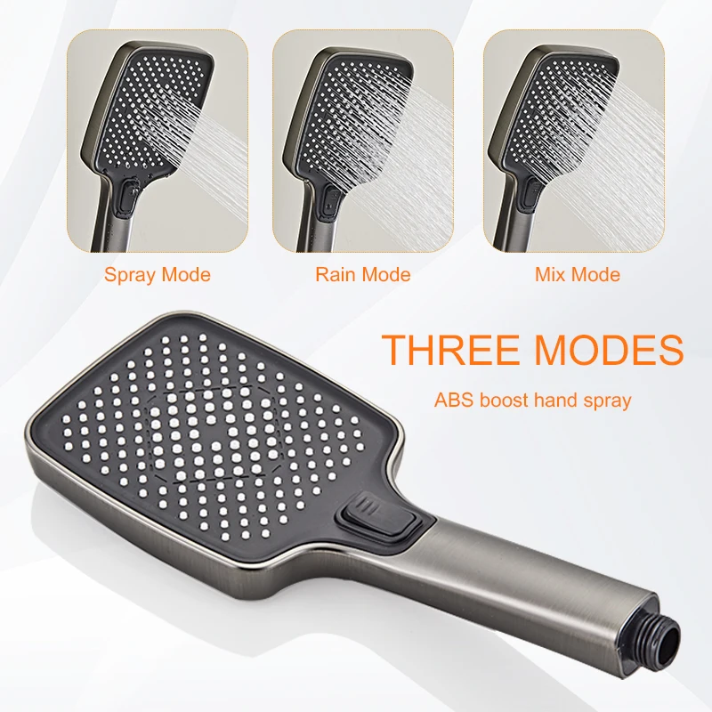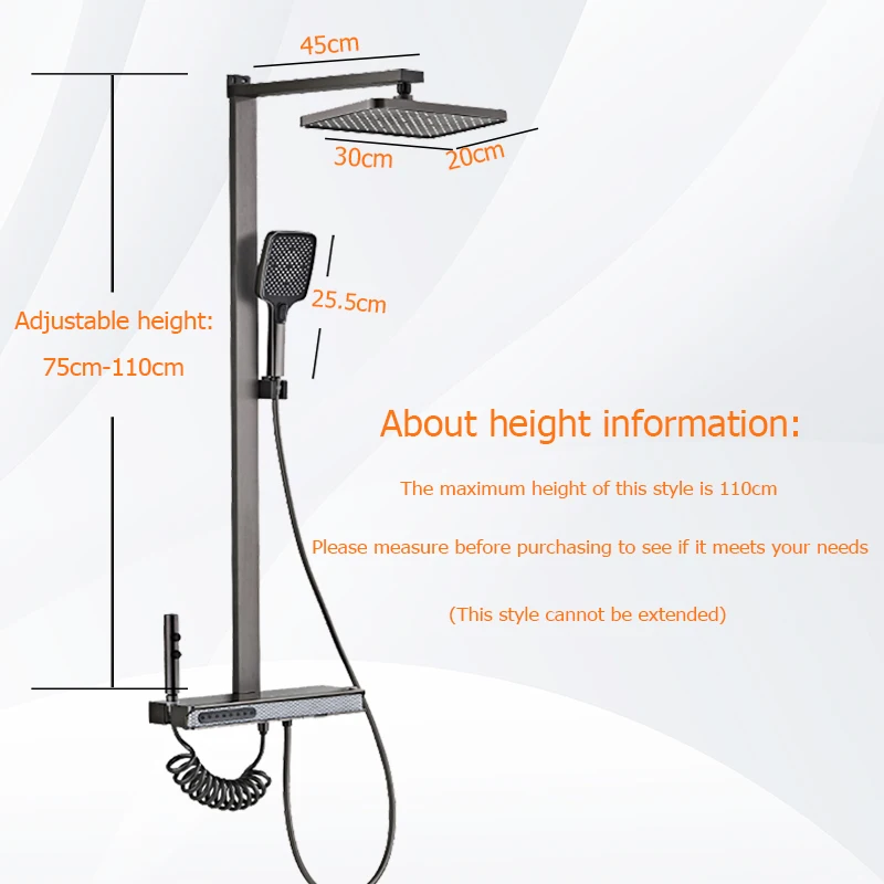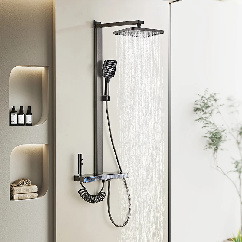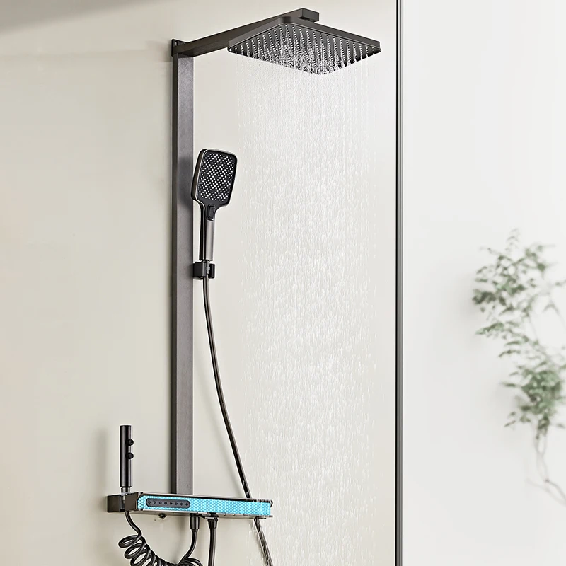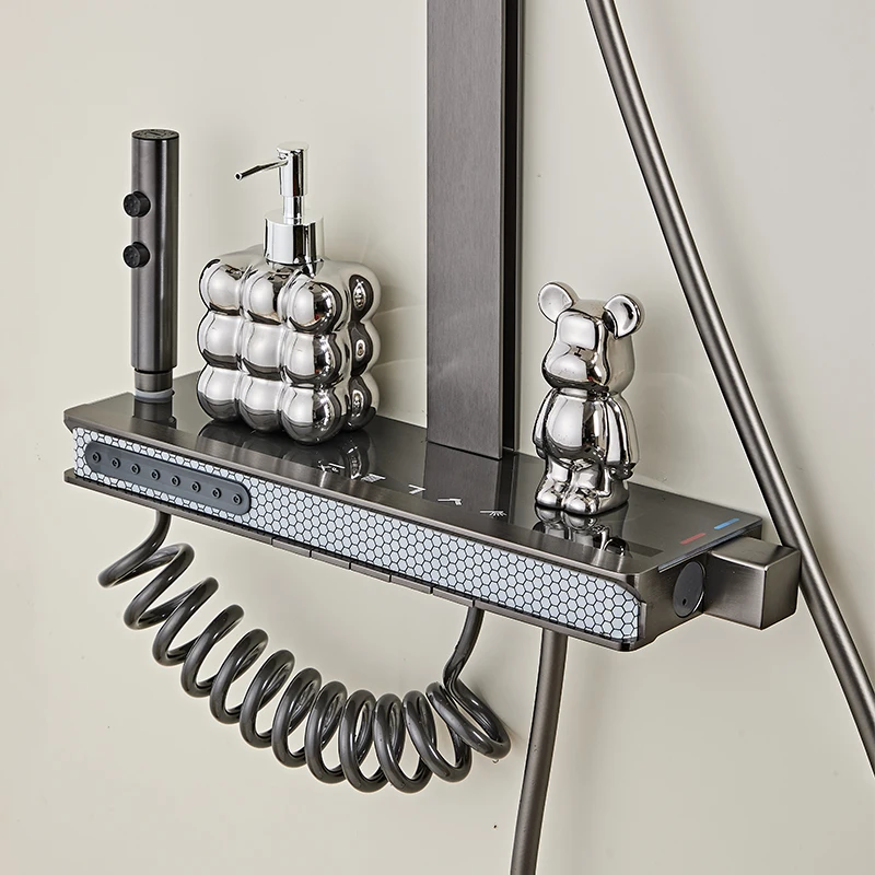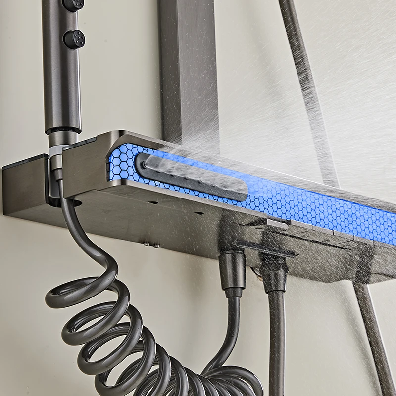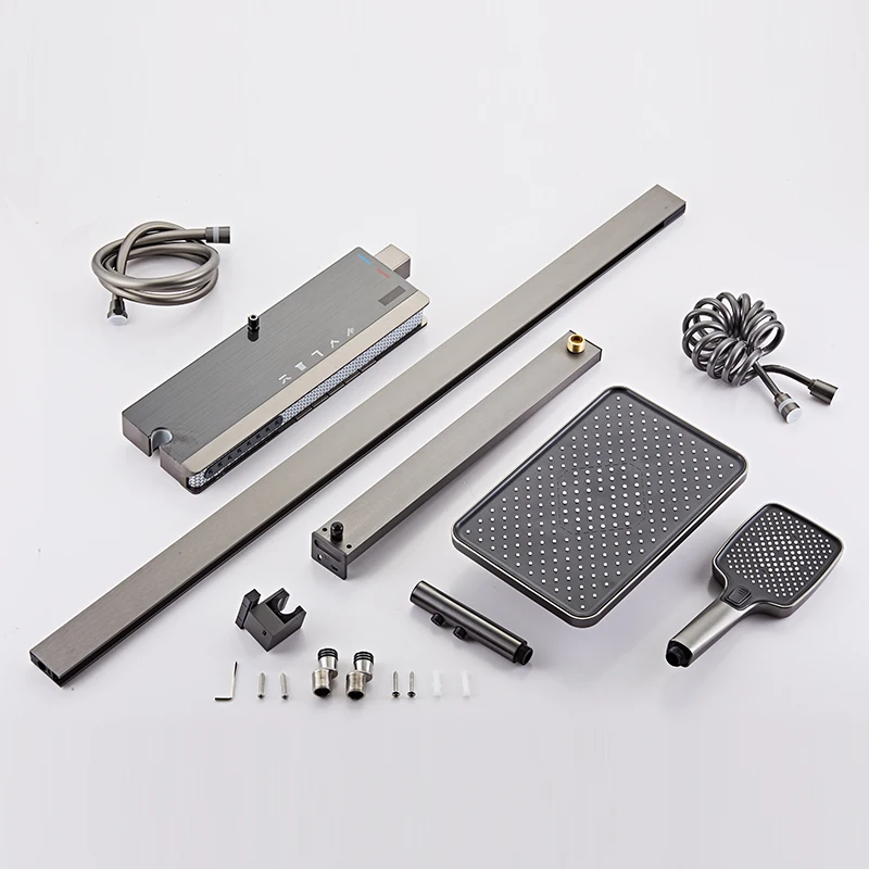 Grijze badkamerdouchekraan met digitaal display, badkamerregendouchekraanset, douchesysteem, omgevingslicht, rugmassage